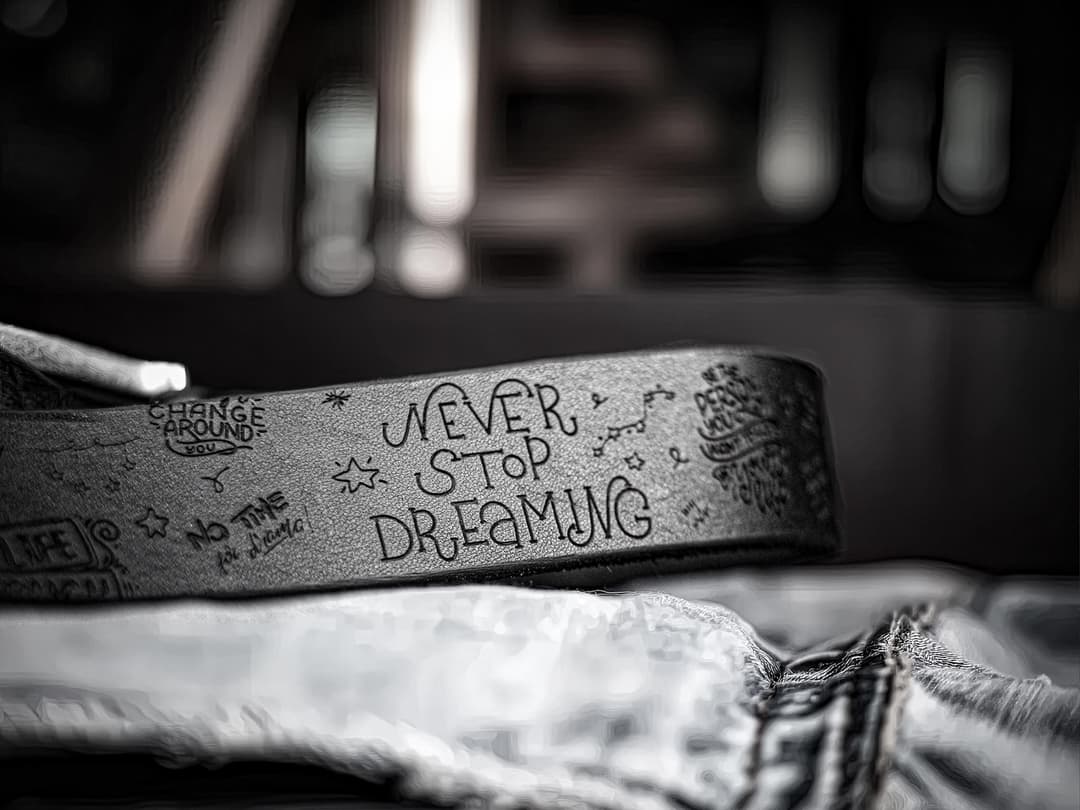 The idea of a belt with engravings emerged from the desire to combine the simplicity of an everyday object with the potential to directly influence a person’s state of mind. Each phrase on the belt is a concise message chosen for its psychological impact. These words are aimed at restoring energy, strengthening confidence, and directing attention back to action. They do not claim uniqueness, but they are precise – because they appear in a context you encounter daily.