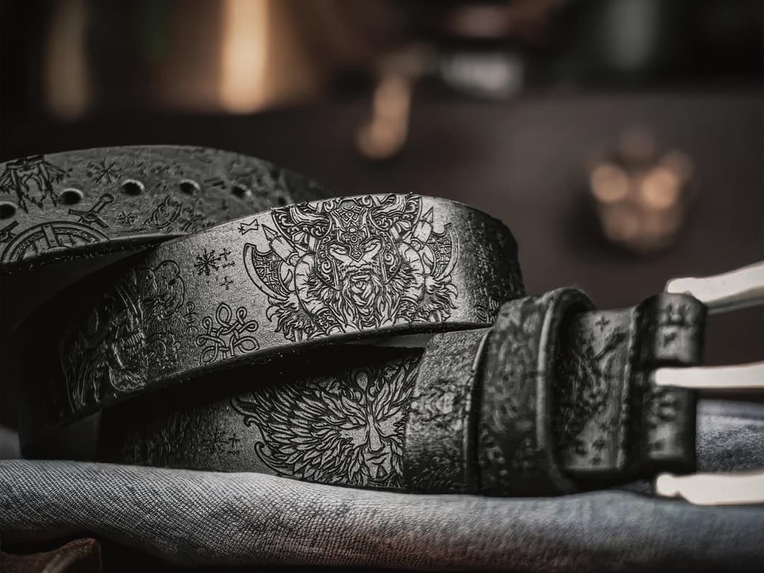 Some belts just hold up your pants. Others invite a closer look. This one falls into the latter category.Not an artifact. Not a talisman. Not a "message from the ancestors." Just a belt - thick leather, a solid buckle that won’t fall apart in a month, and a stunning engraving inspired by Scandinavian themes. Not mystical runes and vague symbolism. Just a nod of respect. Portraits, axes, shields, longships - it’s all there, instantly readable.I really like this piece. It has a mood of its own. So let me tell you more.