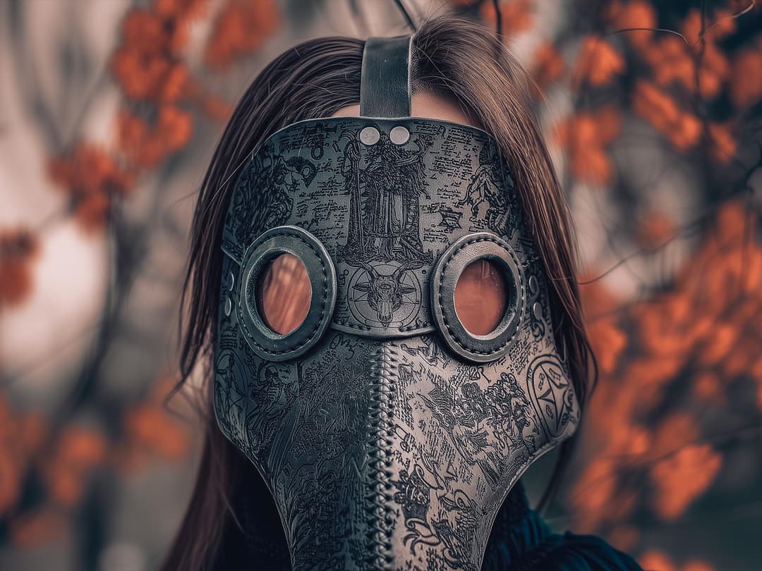 Plague doctor mask with satanic patterns