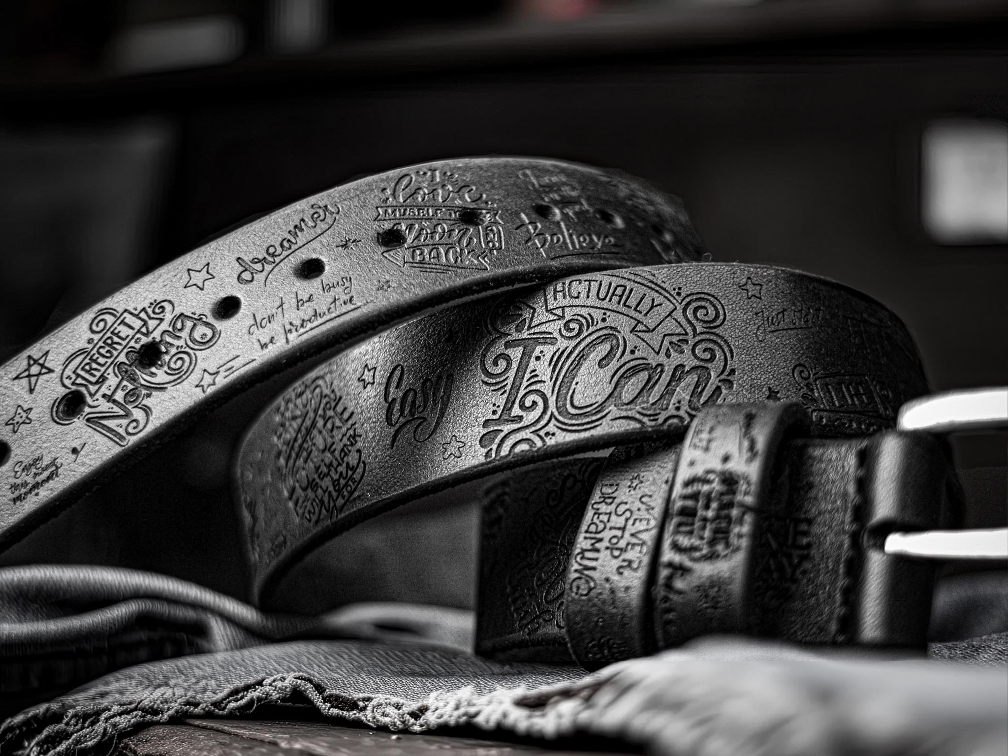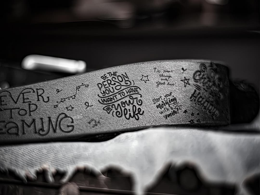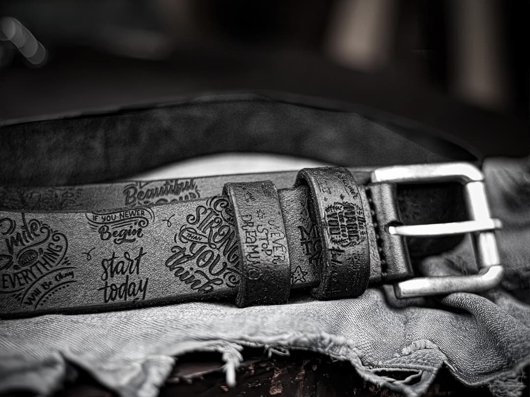 The idea of a belt with engravings emerged from the desire to combine the simplicity of an everyday object with the potential to directly influence a person’s state of mind. Each phrase on the belt is a concise message chosen for its psychological impact. These words are aimed at restoring energy, strengthening confidence, and directing attention back to action. They do not claim uniqueness, but they are precise – because they appear in a context you encounter daily.