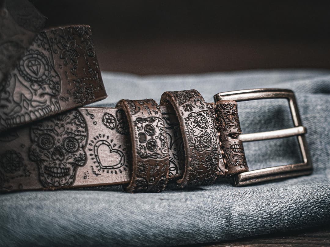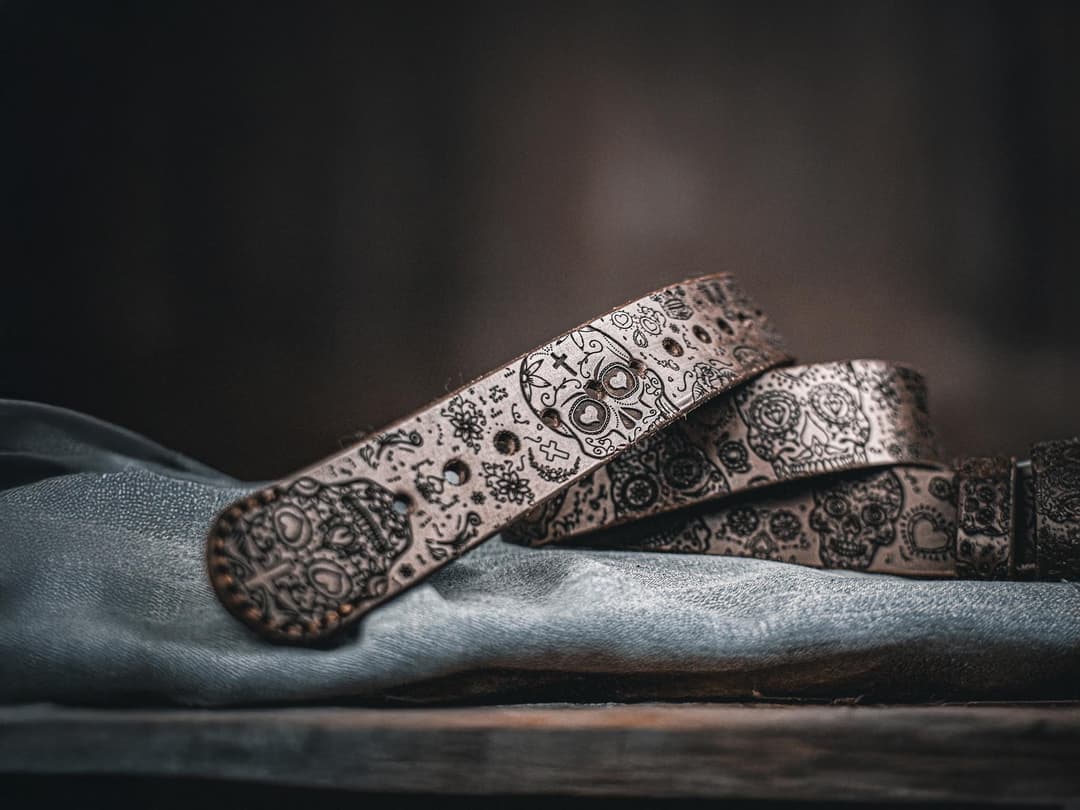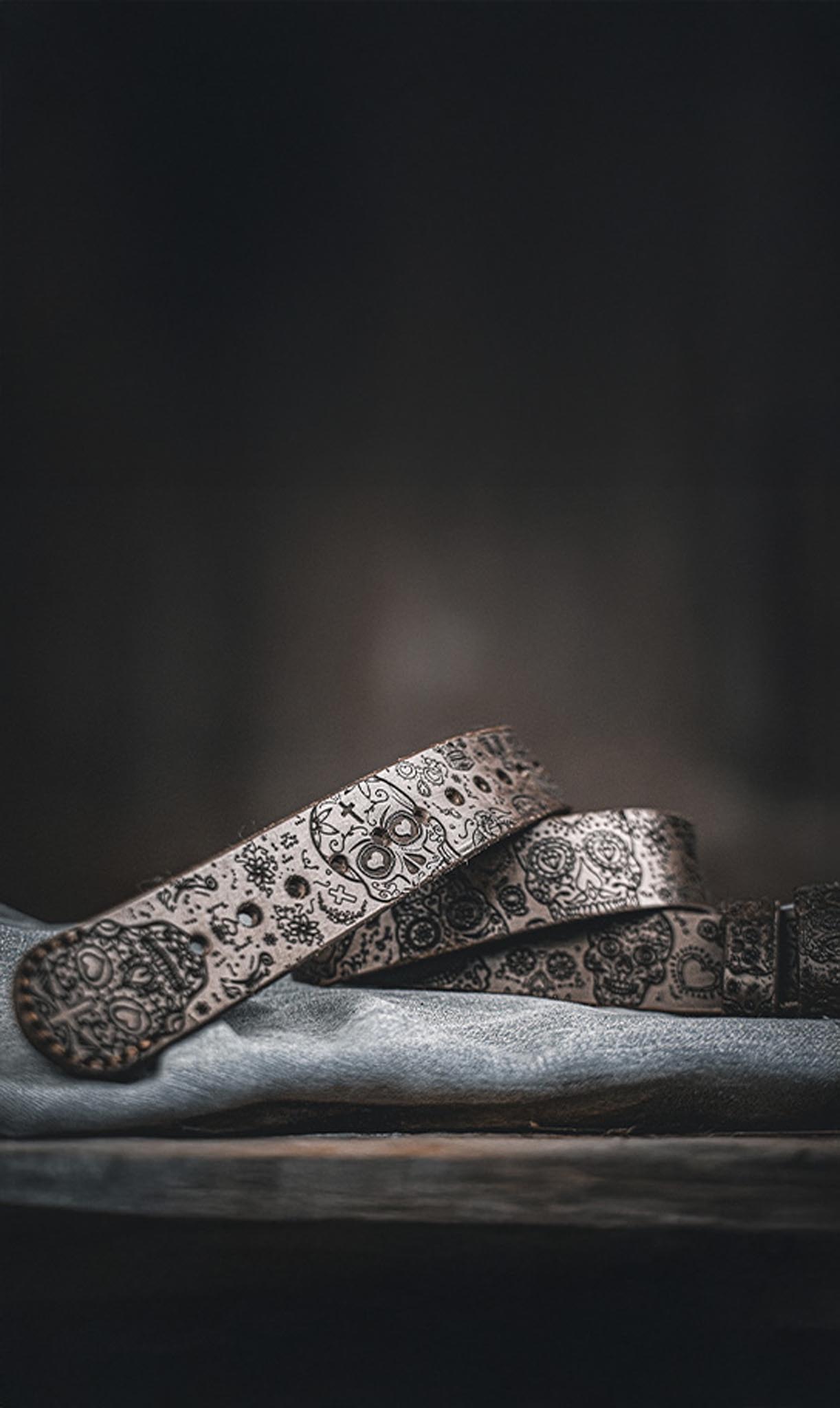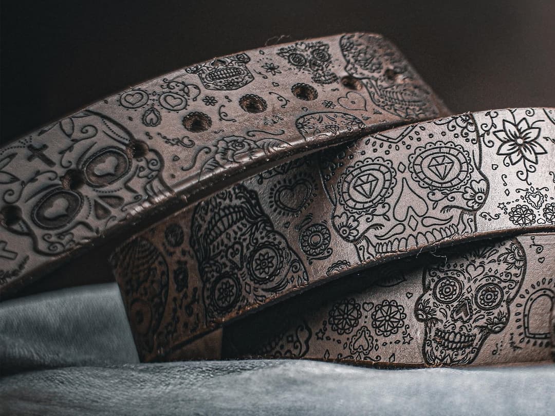 Leather Belt with Engraving Inspired by Día de los Muertos