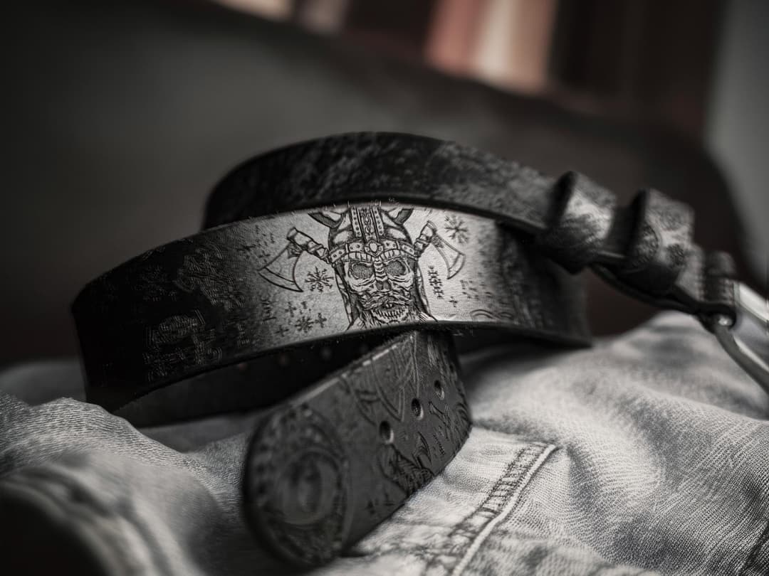 Some belts just hold up your pants. Others invite a closer look. This one falls into the latter category.Not an artifact. Not a talisman. Not a "message from the ancestors." Just a belt - thick leather, a solid buckle that won’t fall apart in a month, and a stunning engraving inspired by Scandinavian themes. Not mystical runes and vague symbolism. Just a nod of respect. Portraits, axes, shields, longships - it’s all there, instantly readable.I really like this piece. It has a mood of its own. So let me tell you more.