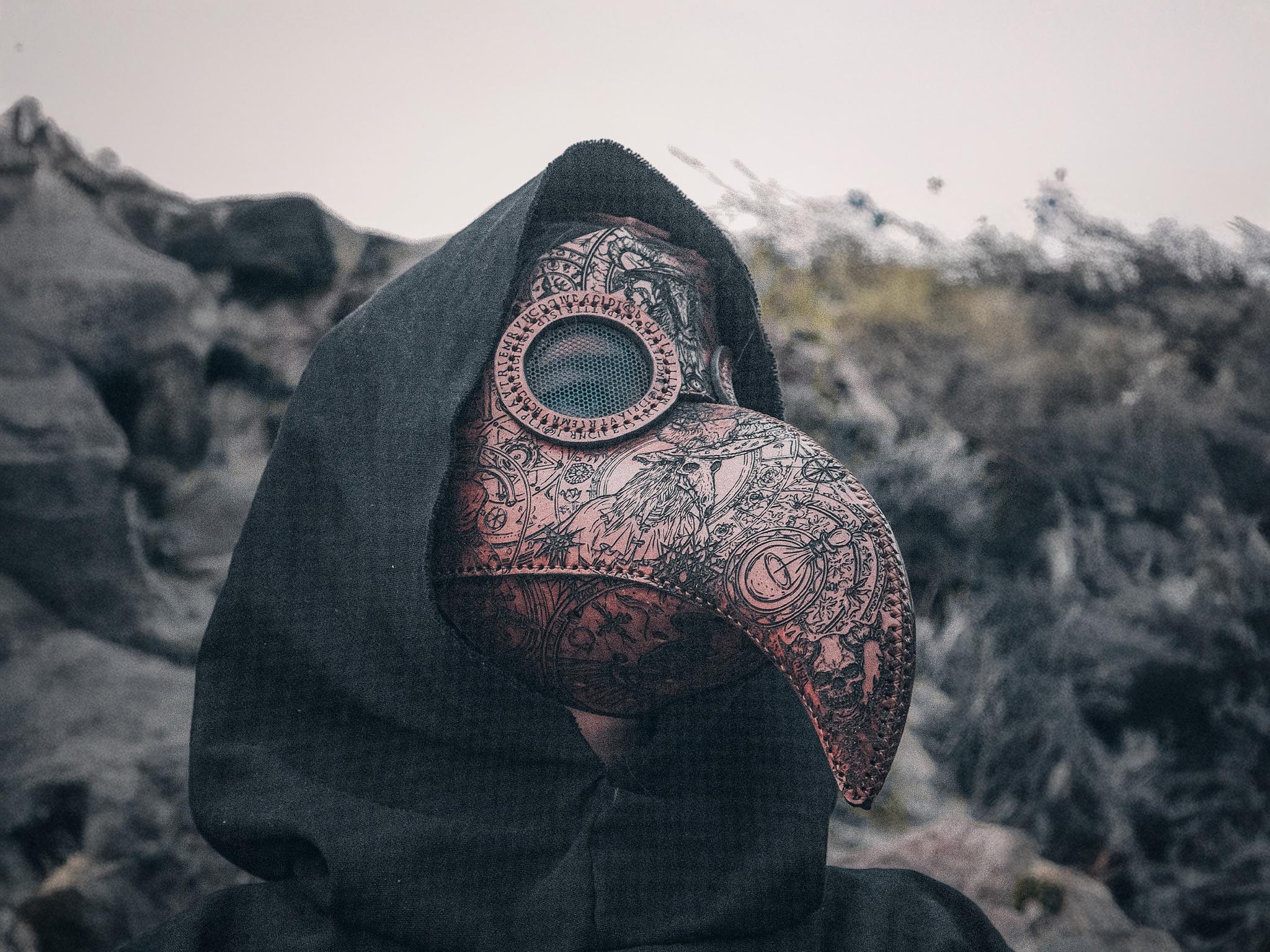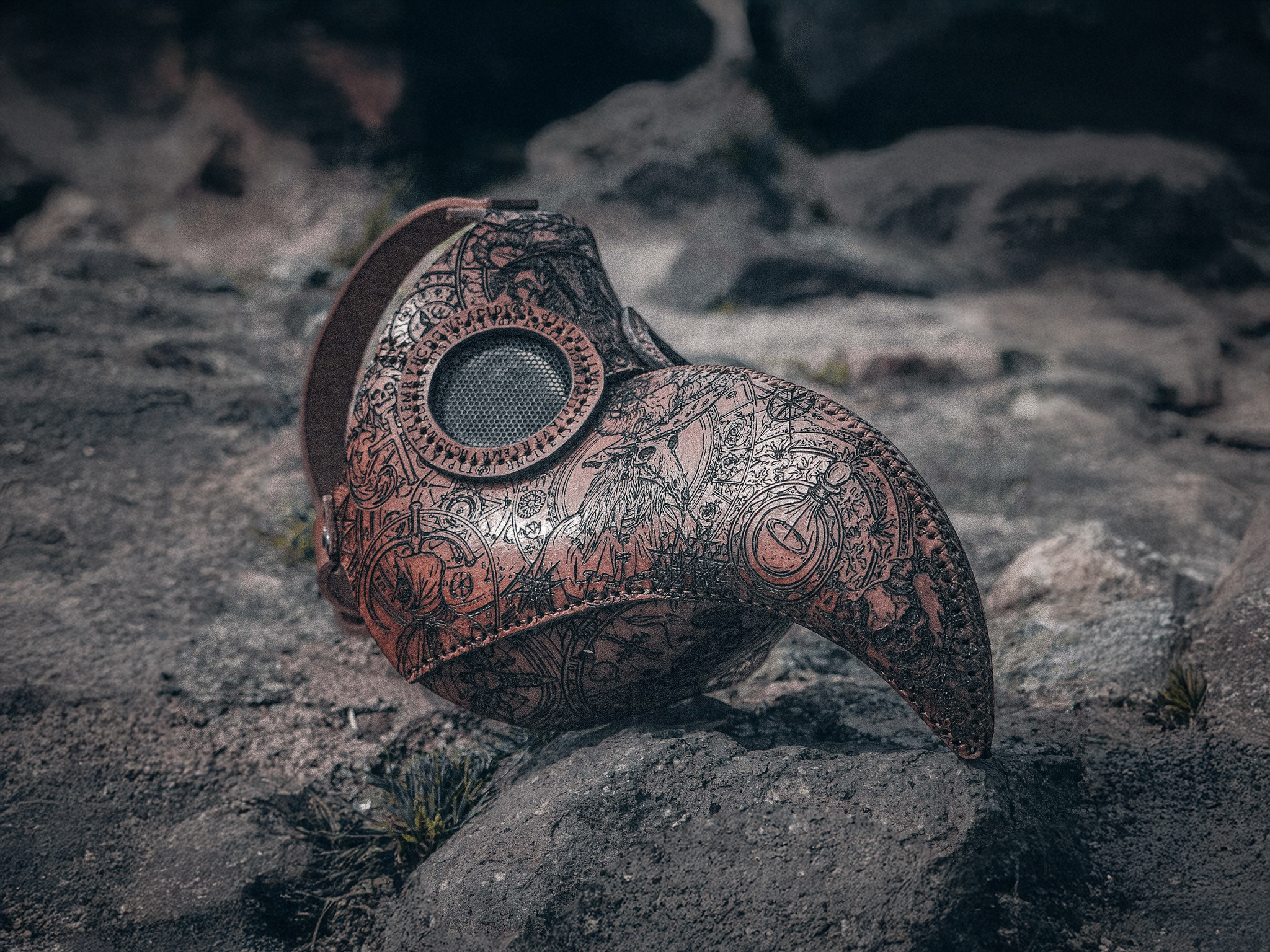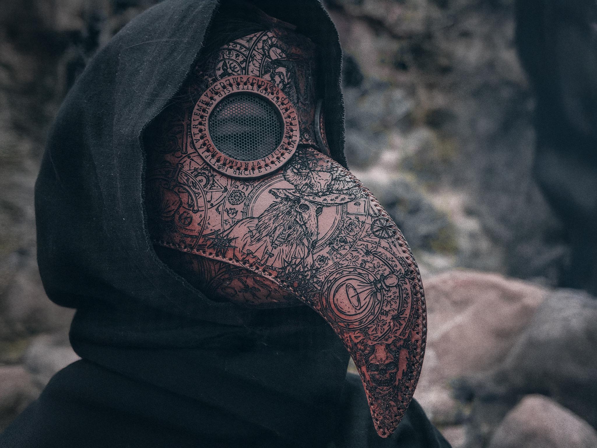 Alongside the medical motifs, the composition includes visual references to the explanatory models of disease common in that era. These include astrological diagrams, simplified hexagrams, illustrations of humoral theory, visualizations of the “corrupted air” (miasma) concept, and elements of architectural settings such as city gates, hospital interiors, and quarantine scenes.