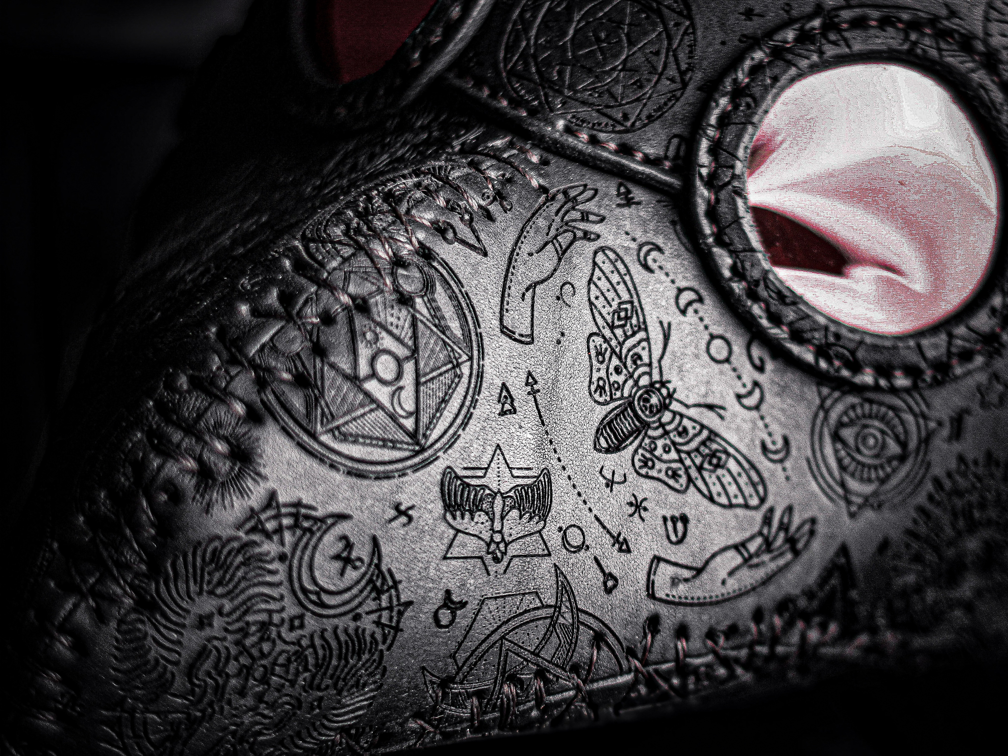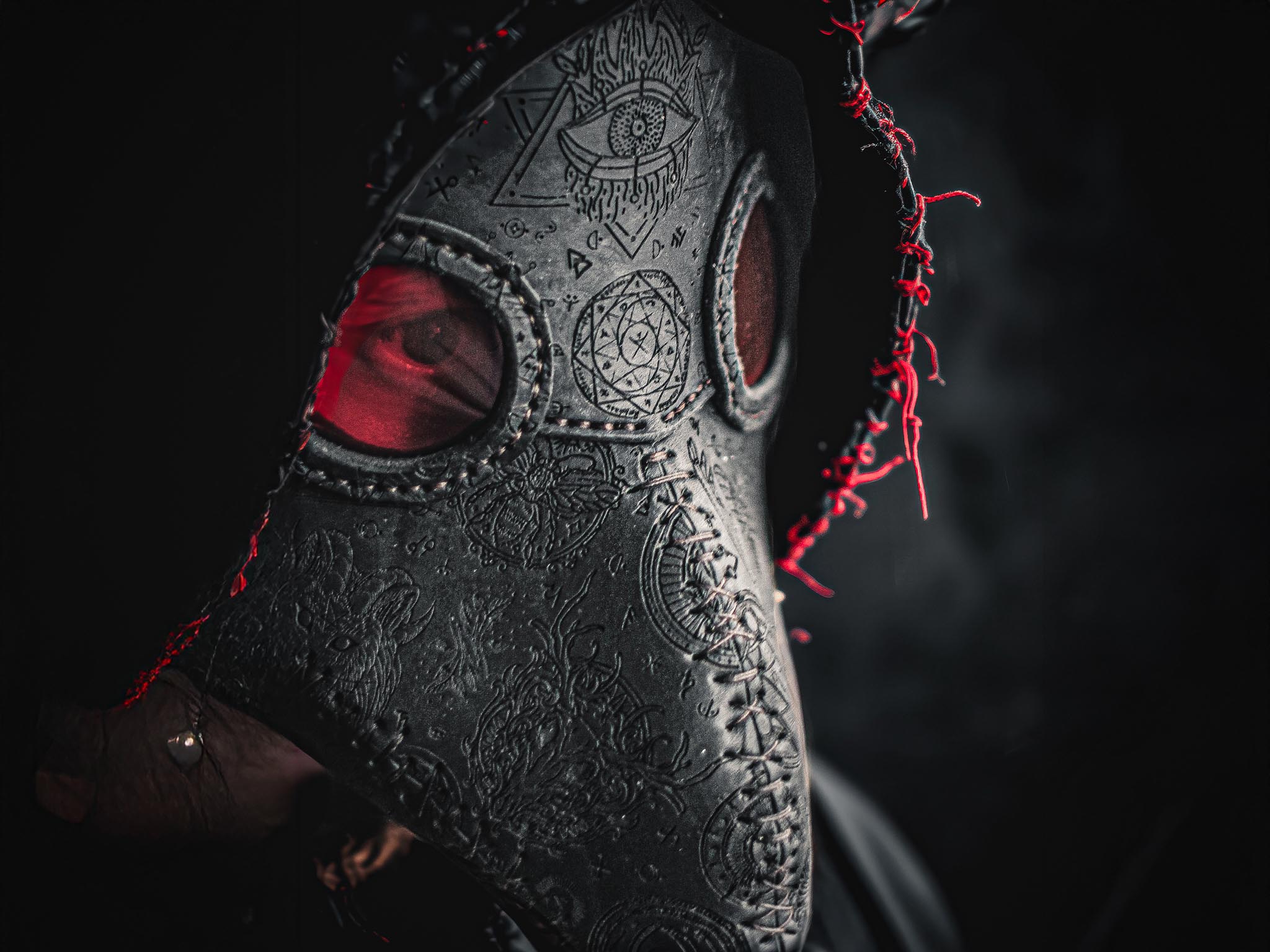 This mask emerged from the idea of bringing together two powerful symbols of European history - the figure of the doctor confronting the unknown, and the image of the woman whose knowledge lies beyond what was once considered acceptable. The archetype of the plague doctor represents an attempt to bring order through science. The witch embodies an intuitive understanding of the world, rooted in nature and ritual. Together, they form a contrasting yet unified structure where logic meets mystery.